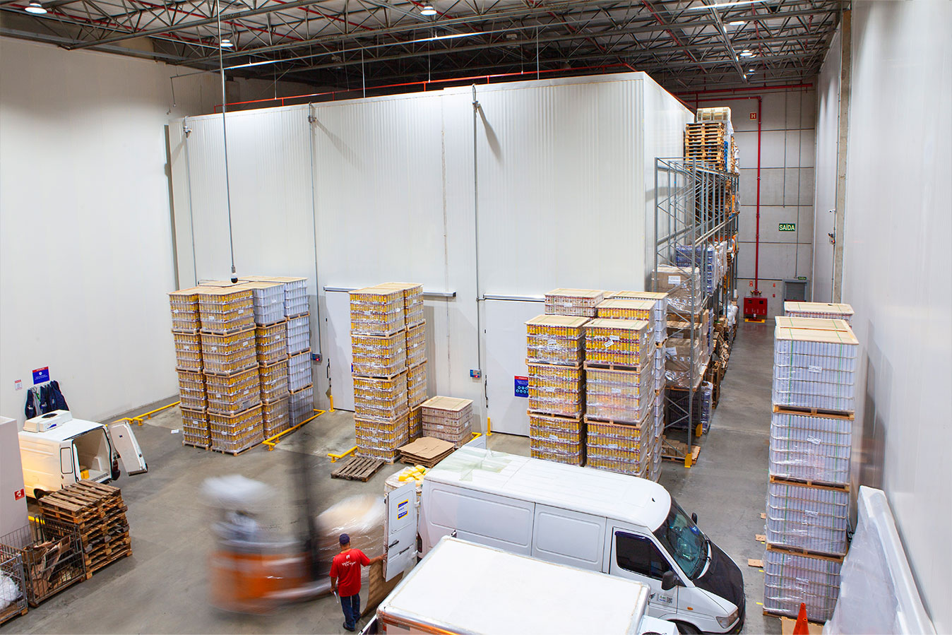 Diversas camaras frias garantem a temperatura certa para cada tipo de produto, além de espaços ventilados e organizados para cargas secas.